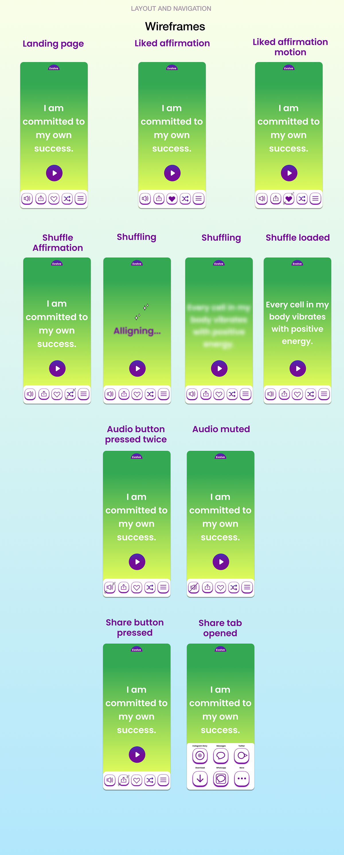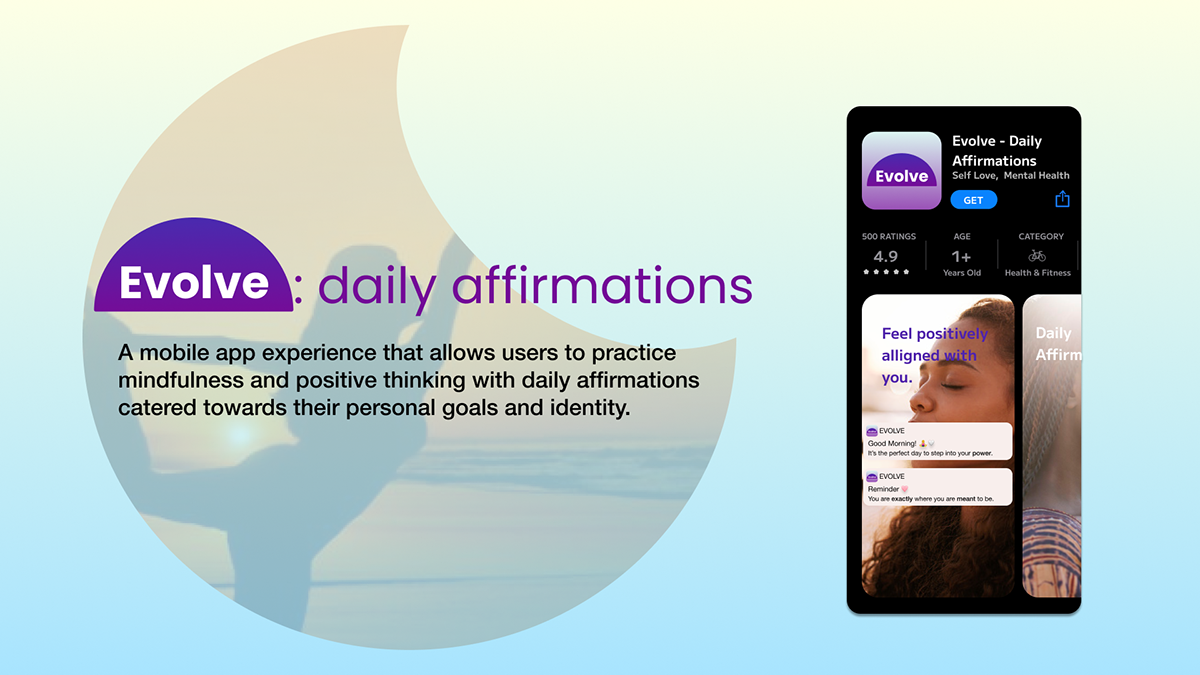 Evolve bridges the gap by offering a simple, inclusive platform for practicing affirmations. Its unique features include: